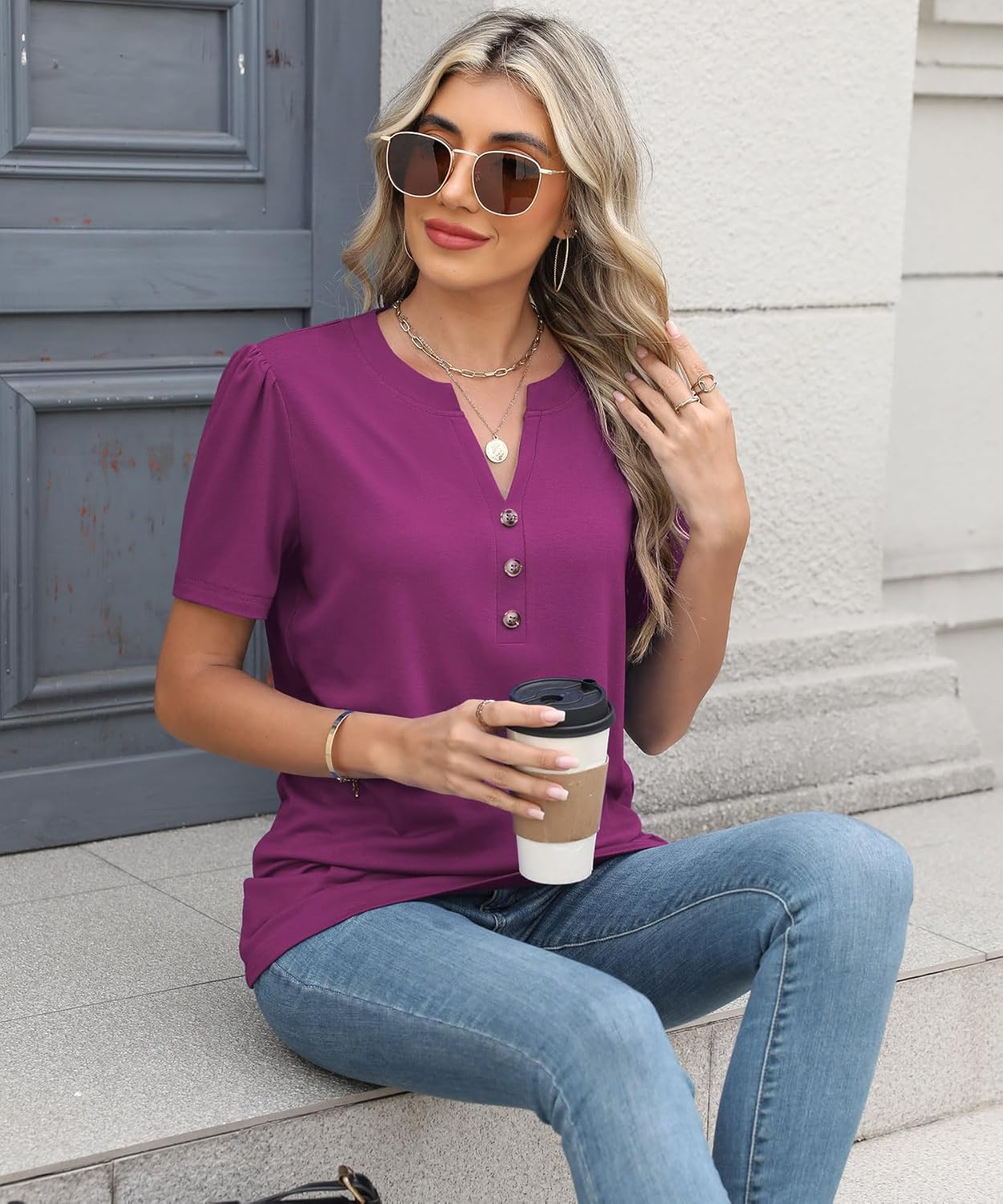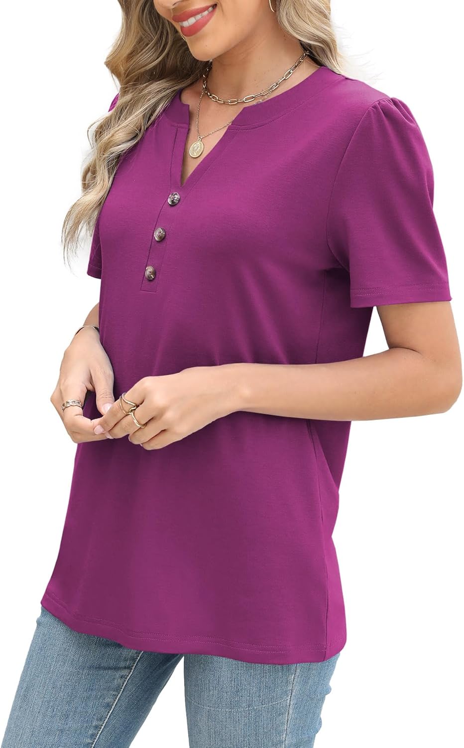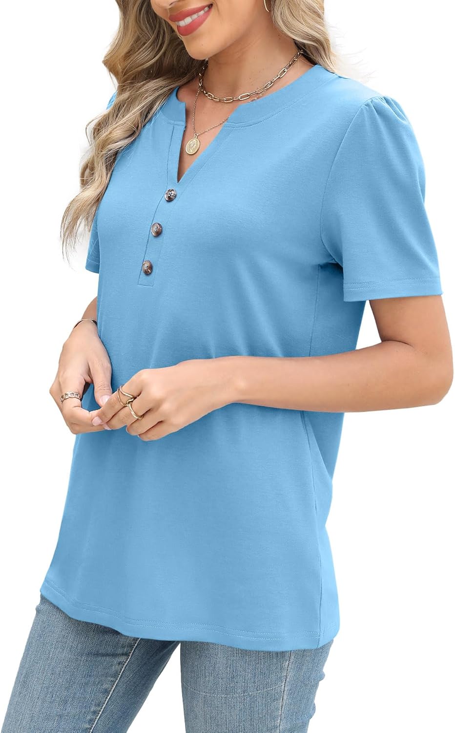 Summer Tops for Women Puff Sleeve Blouses V Neck Tunic Fashion Summer Outfits
